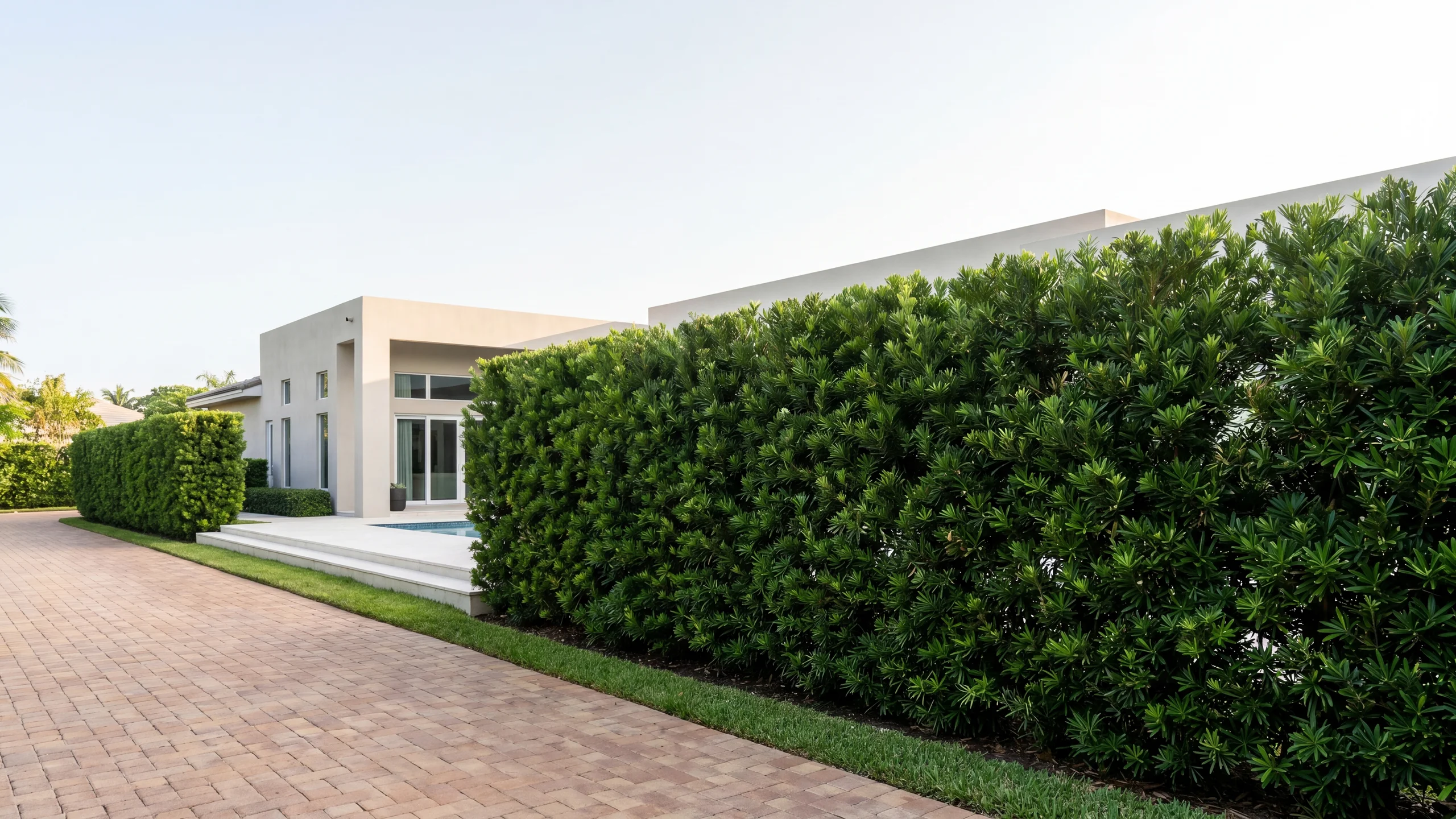 Podocarpus is less ideal directly on a beachfront with constant salt spray, or on very wide open lots where a lush, rounded, tropical look fits the property better. In those cases Clusia is usually the stronger match, and we will say so during the quote rather than sell you the wrong hedge.