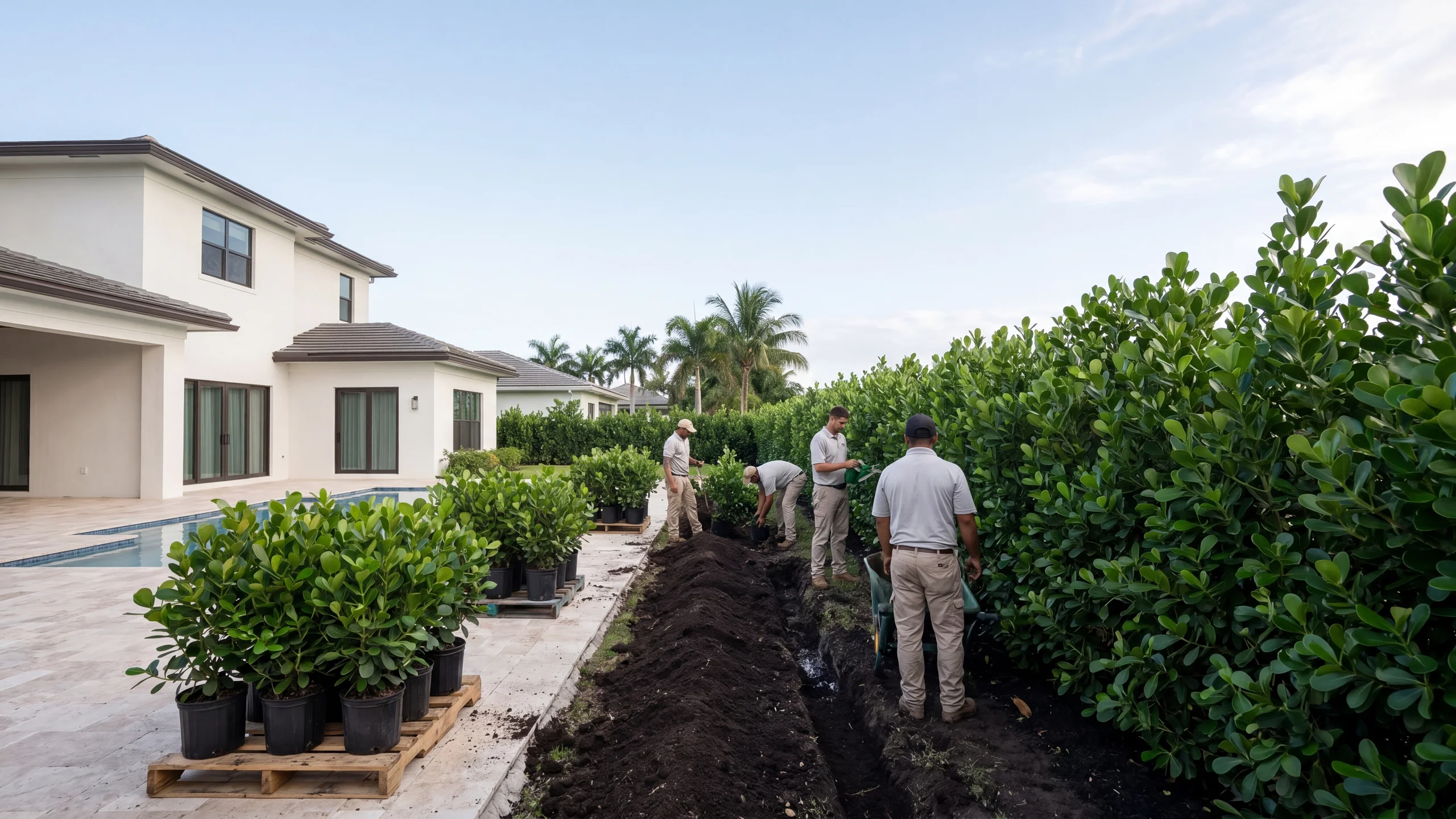 South Florida soil varies wildly from yard to yard. Coastal sandy soil behaves differently from inland marl, and either can have pockets of fill left over from original construction. We open the planting bed, check what is actually in it, and amend as needed before the plants go in. No hedge performs well rooted into compacted fill or construction rubble.