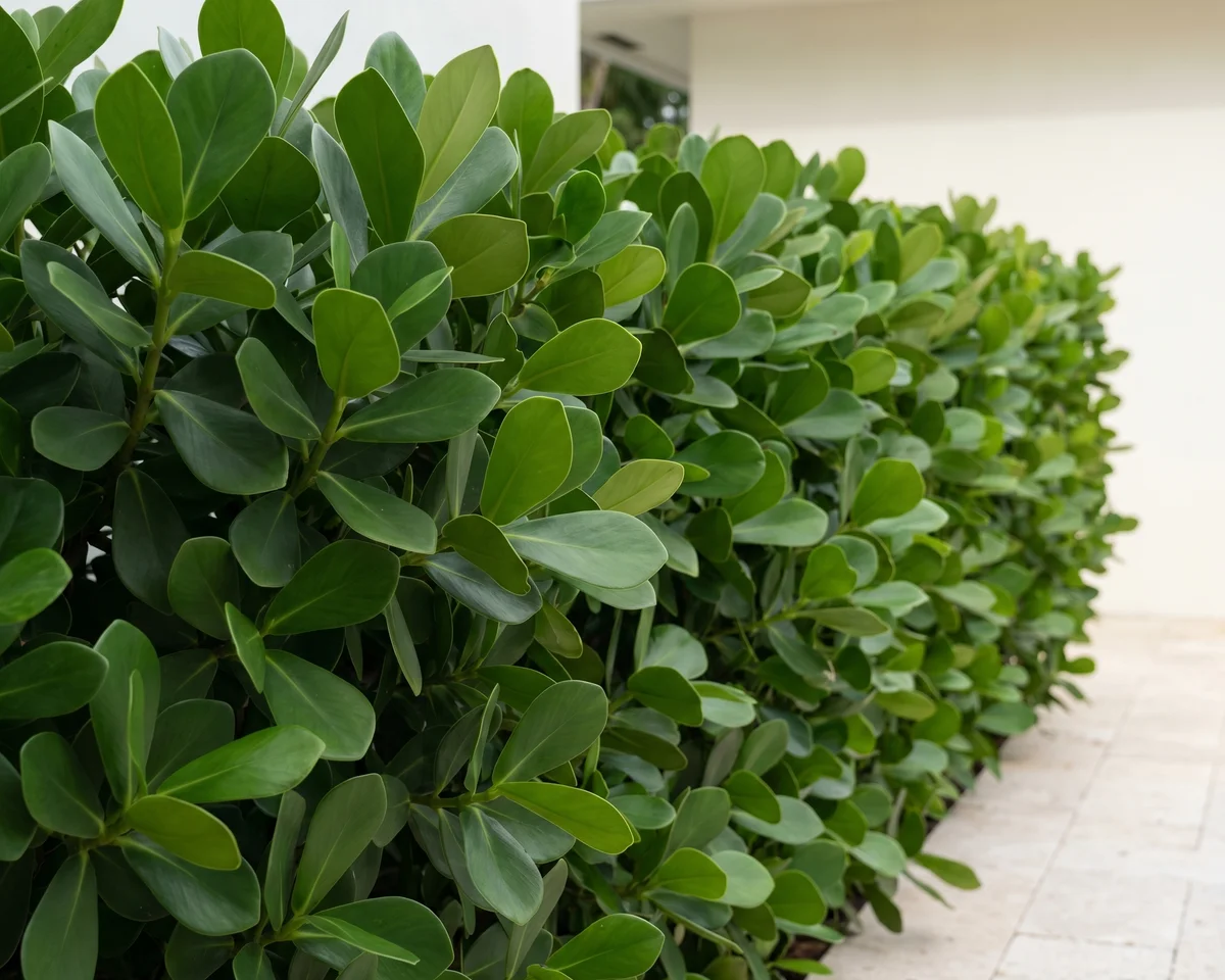 Most premium South Florida privacy hedges are not especially pest-prone. Clusia has relatively few pest issues. Podocarpus is also low-pressure. The notable exception is ficus, where the ficus whitefly has made healthy ficus hedges significantly harder to maintain over the last several years. Hedges covered in sticky honeydew or black sooty mold are almost always dealing with whitefly or a close cousin.